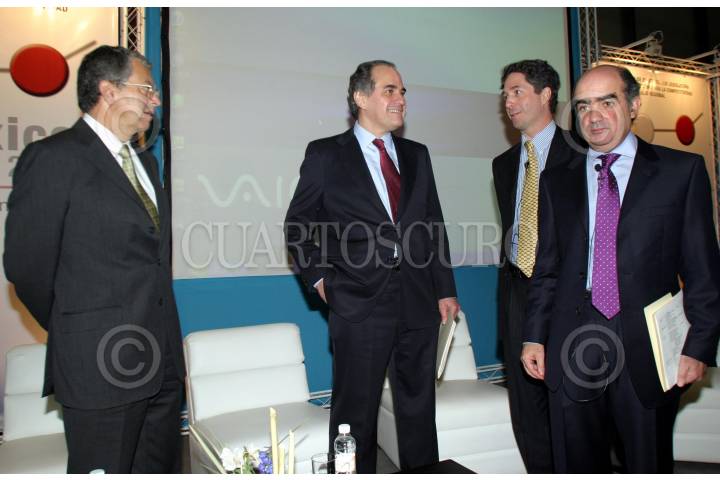 MEXICO, D.F., 07MARZO2006.- Luis Tellez, Herminio Blanco, Luis de la Calle y Manuel Camacho Solís, diputado federal, durante le foto sobre competitividad orgnizado por el Senado, en el hotel del centro de la capital. FOTO: Moisés Pablo/CUARTOSCURO.COM