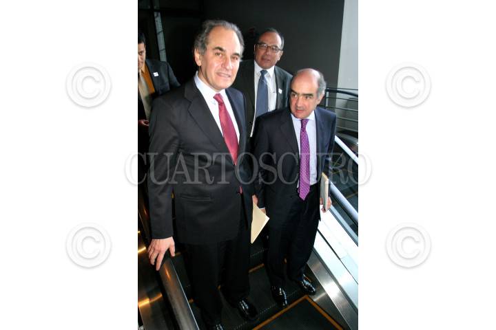 MEXICO, D.F., 07MARZO2006.- Herminio Blanco y Luis Tellez, ex-colaboradores del sexenio de Carlos Salinas, durante el foro de competitividad organizado por el Senado, en un hotel del centro de la capital. FOTO: Moisés Pablo/CUARTOSCURO.COM