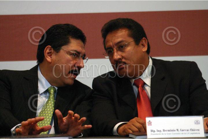 OAXACA, OAXACA., 07DICIEMBRE2007.- Herminio Cuevas Chavez y Ulises Ruiz en el informe que rindió hoy el presidente del tribunal superior de justicia del estado de Oaxaca, acompañado de distintos funcionarios, entre ellos el presidente de la gran comision de la camara de diputados de oaxaca. FOTO: MAX NUÑEZ/CUARTOSCURO.COM
