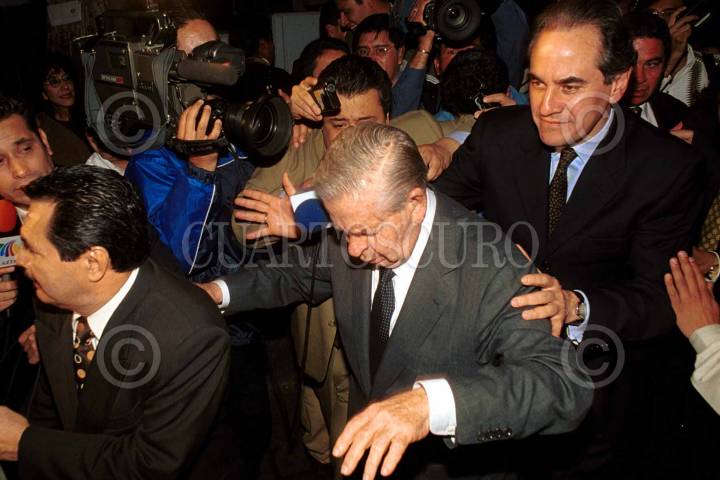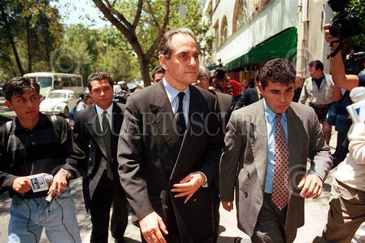 El títular de la Secofi, Herminio Blanco saluda al senador panista Diego Fernandez de Cevallos, antes de que se rindiera el VI Informe de gobierno del presidente Ernesto Zedillo. FOTO: Germán Romero/CUARTOSCURO.COM