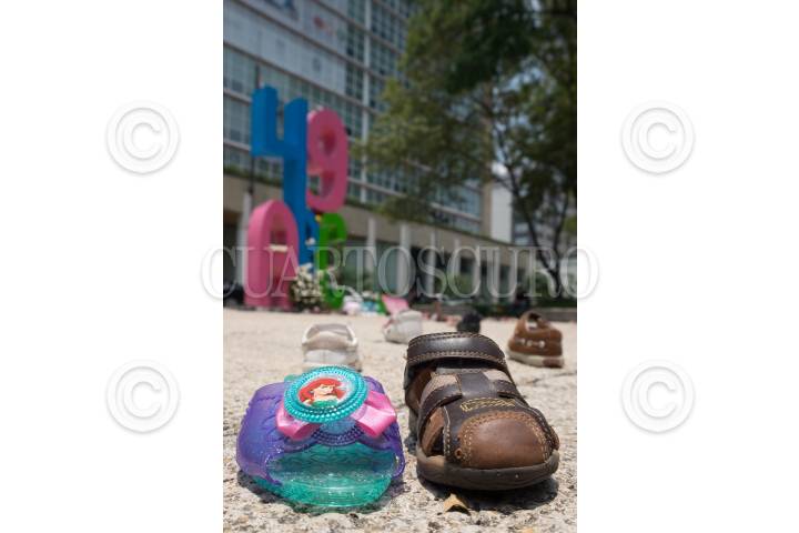 CIUDAD DE MÉXICO, 07JUNIO2018.- Padres y familiares de los 49 niños que perdieron la vida en el incendio de la Guardería ABC de Hermosillo, el 5 de junio de 2009; colocaron los 49 pares de zapatos de cada uno de los niños en el monumento ABC que se encuentra en frente del Instituto Mexicano del Seguro Social (IMSS). FOTO: ANDREA MURCIA /CUARTOSCURO.COM