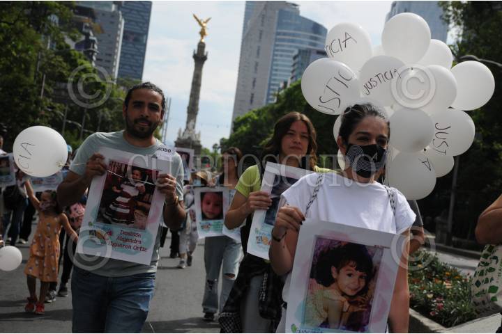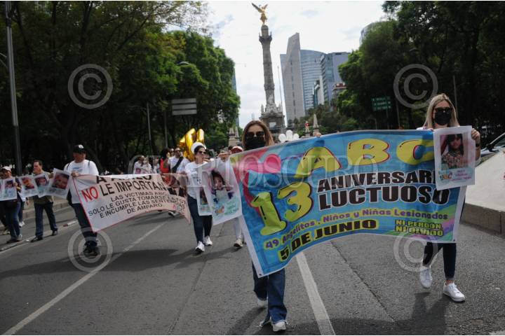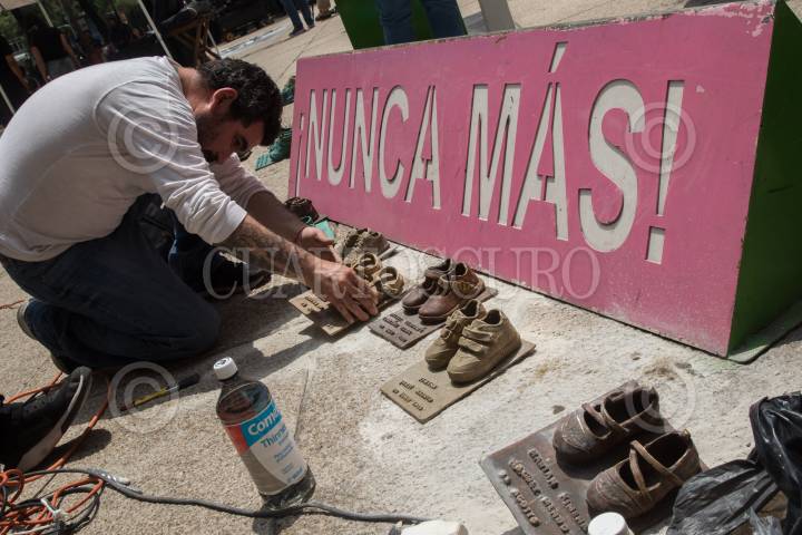 CIUDAD DE MÉXICO, 05JUNIO2019.- Padres de los 49 niños que murieron en el incendio de la guardería ABC en Hermosillo, Sonora, se manifestaron en Antimonumento colocado en su memoria frente a las oficinas del IMSS, hoy se cumplen 10 años de esta tragedia sin que hasta la fecha se haya castigado por su responsabilidad. Los padres colocaron 25 zapatitos de bronce al pie del Antimonumento con el clamor de justicia para sus hijos. FOTO: MOISÉS PABLO /CUARTOSCURO.COM