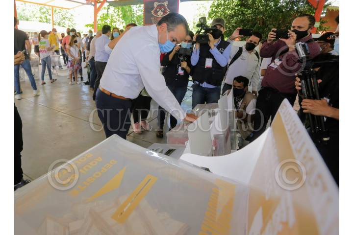 Antonio Aztiazarán, candidato a la alcaldía de Hermosillo por la alianza "Va x Sonora", emitió su voto en la colonia Loma Linda.
