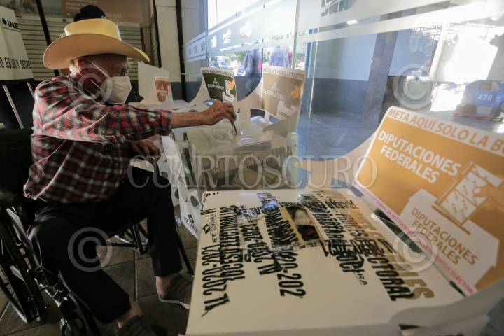 Don José, acudió e silla de ruedas, para votar en la casilla especial que se ubicó en la Central de Autobuses de Hermosillo.