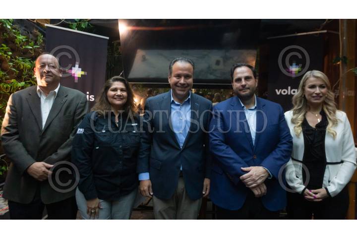 Manuel Lira Valenzuela, Presidente CANIRAC Sonora; Luz María Castillo, Presidenta de OICV Hermosillo; Antonio Astiazarán Gutiérrez, Presidente Municipal de Hermosillo; Germán González Bernal, Presidente Nacional de CANIRAC y Fernanda Cisneros Rodríguez, Directora de Desarrollo Turístico de Hermosillo; en conferencia de prensa Festival del Globo Hermosillo