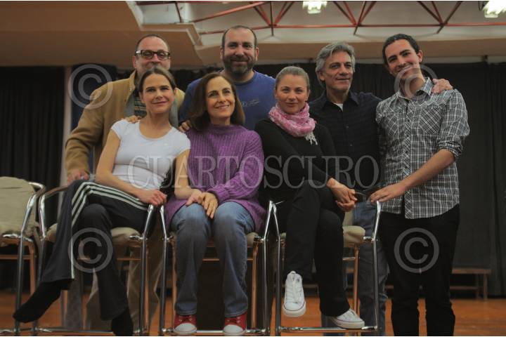 MÉXICO, D.F. 23ENERO2012.- El director, Diego del Río, los actores Nailea Norvind, Hernán Mendoza, Diana Bracho, Ludwika Paleta, Juan Carlos Barreto y el productor Morris Gilbert, durante la conferencia de prensa en la que hablaron sobre la obra teatral “Espejos”, de Annie Baker, bajo la dirección de Diego del Río que se presentara el próximo mes en Santa Fe. FOTO: DIEGO SIMÓN SÁNCHEZ/CUARTOSCURO.COM