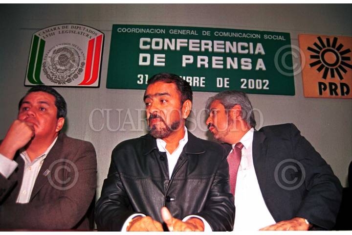Hugo Camacho y José Narro, diputados del PAN y PRD, acompañan a Francisco Hernández Juárez (al centro), líder de la Unión Nacional de Trabajadores; en conferencia de prensa para mejorar servicios médicos de la Asociación Sindical de Pilotos Asiociados (ASPA), perteneciente a esta agrupación sindical. FOTO: Juan Pablo Zamora/CUARTOSCURO.COM