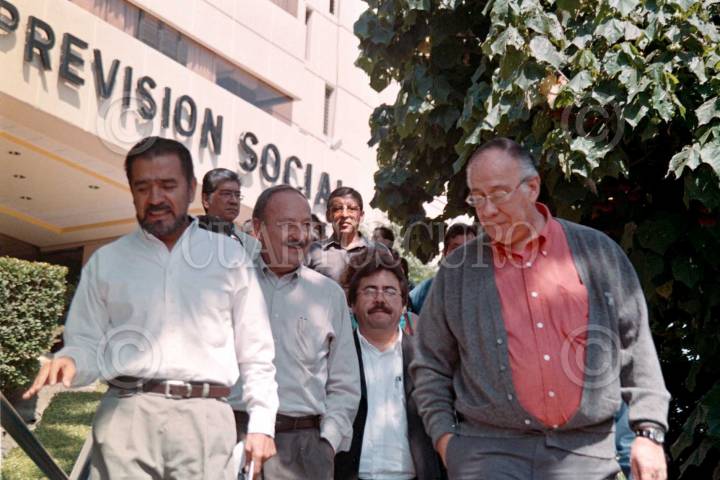 Francisco Hernández y Emilio Gómez Vives, lìderes de los trabajadores de la planta automotríz VW Puebla, se reuiniero en la Secretaria del Trabajo para tratar con los directivos un aumento del 21%. FOTO: Susana Navarrete/CUARTOSCURO.COM