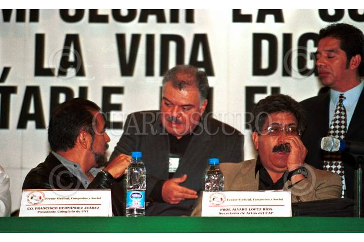 Francisco Hernández Juárez, presidente de la Unión Nacional de Trabajadores y Alvaro López Ríos secretario del Congreso Agrario Permanente, estuvieron presentes durante la Asamblea Constitutiva en la cual se crea El Frente Sindical, Campesino y Sociol, tiene como objetivo impulsar la soberanía alimentaria, el empleo, la vida digna y el desarrollo en el campo y la ciudad. FOTO : Sandra Perdomo/ CUARTOSCURO