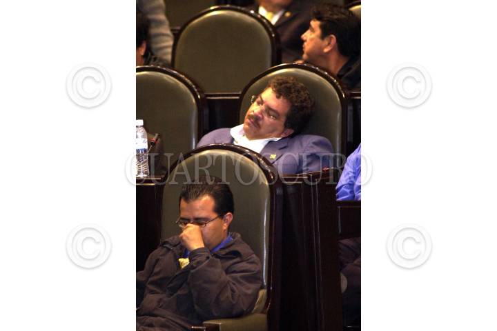 La bancada perredista tampoco evitó la fatiga en esta última sesión legislativa. Al centro de la imagen, Alfredo Hernández Raigoza duerme una siesta durante la asamblea de la cámara baja. FOTO: Juan Pablo Zamora/CUARTOSCURO.COM