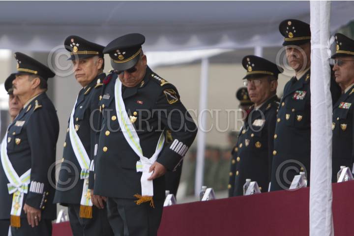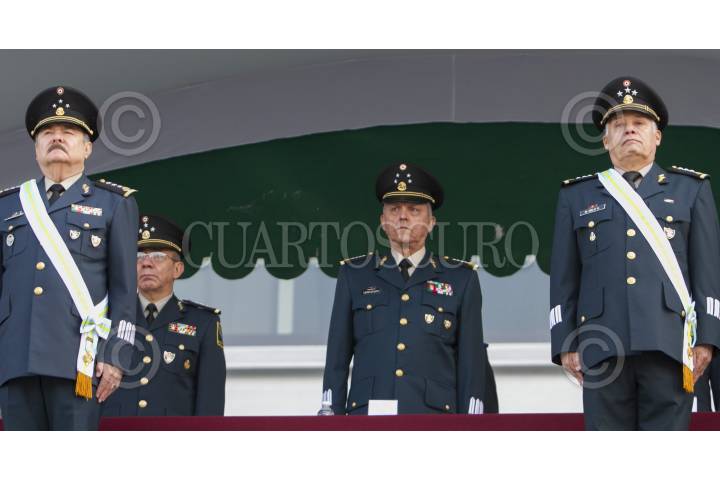 MÉXICO, D.F., 02DICIEMBRE2014.- Salvador Cienfuegos Zepeda, titular de la Secretaría de la Defensa Nacional, presidio la Ceremonia de Condecoración de Retiro a Generales de División y elementos del ejercito realizaron un desfile en su honor, en el Heroico Colegio Militar. Los generales en retiro fueron Marco Antonio González Barreda, Moisés García Melo, Alberto Martínez Herrera y Roberto de la Vega Díaz. FOTO: GUILLERMO PEREA /CUARTOSCURO.COM