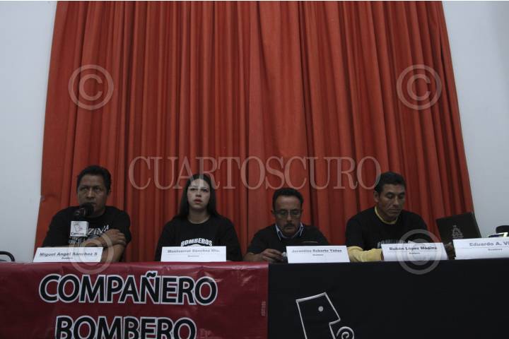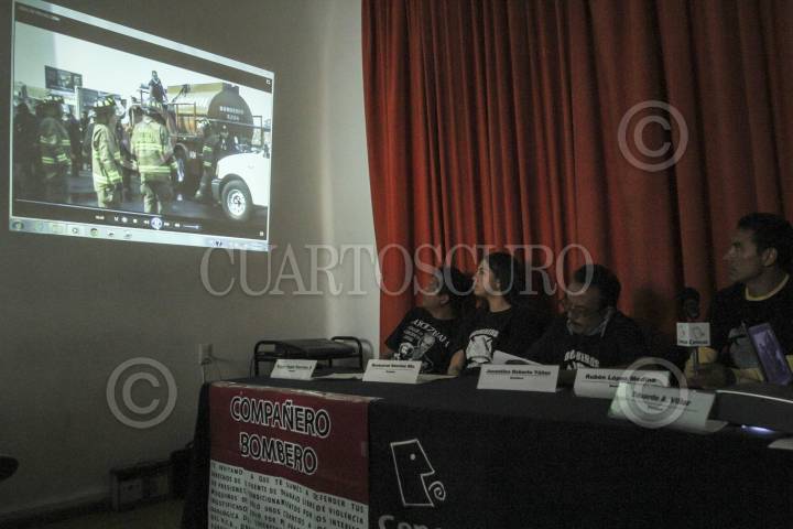 MÉXICO, D.F., 13ABRIL2015.- Integrantes del Heroico Cuerpo de Bomberos de la Ciudad de México, denunciaron ante autoridades y medios de comunicación las condiciones que se viven en el departamento como, despidos injustificados, violencia fisica, acoso sexual, venta de plazas por 200 mil pesos, falta de capacitación, discriminación, machismo, falta de material, durante la conferencia mostraron vídeos que evidencian el maltrato que han sufrido alguno por parte de otros elementos del cuerpo de bomberos y seguridad pública. FOTO: ISABEL MATEOS /CUARTOSCURO.COM