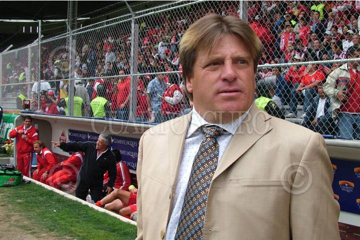 TOLUCA EDO, MÉX 11FEBRERO2006.- Miguel Herrera, director técnico del equipo Monterrey, durante el encuentro del equipo Toluca con Monterrey del torneo de Clausura 2006 donde el club choricero perdio 1-0. En la imagen se puede apreciar al fondo a Americo Gallego, director Técnnico del Toluca dando algunas instrucciones. FOTO:Noe Marure/CUARTOSCURO.COM