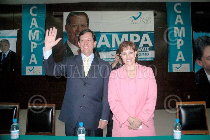MÉXICO D.F. 09MAYO2006.- El candidato del partido Nueva Alianza a la presidencia, Roberto Campa junto con Laura Elena Herrejón, candidata de Nueva Alianza al senado, durante la reunión con integrantes de la Federación Nacional de Sindicatos Bancarios. FOTO: Diego Gallegos/CUARTOSCURO.COM