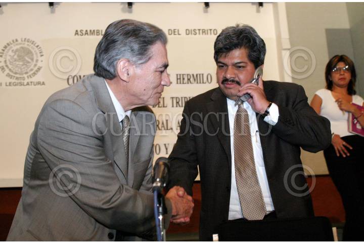 MEXICO, D.F. 29NOVIEMBRE2004.- Hermilo Herrejón Silva, presidente del Tribunal Electoral del DF, compareció ante la Comisión de Presupuesto y Cuenta Pública de la Asamblea Legislativa. Lo acompañó Francisco Chiguil Figueroa, presidente de la comisión. FOTO: Moisés Pablo/CUARTOSCURO.COM