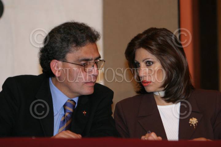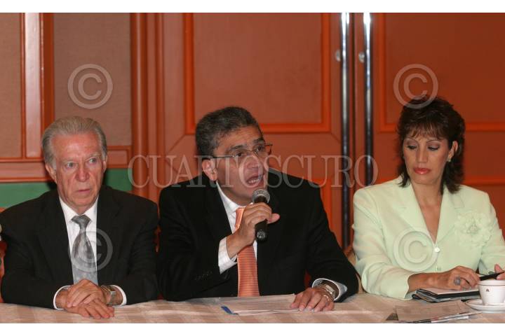MEXICO, D.F., 23JUNIO2005.- Laura Elena Herrejón Caballero, Cesar Camacho Quiroz, senador, y José Romero Apís, durante el Seminario Metrópoli 2005, realizado en el University Club. FOTO: Moisés Pablo/CUARTOSCURO.COM