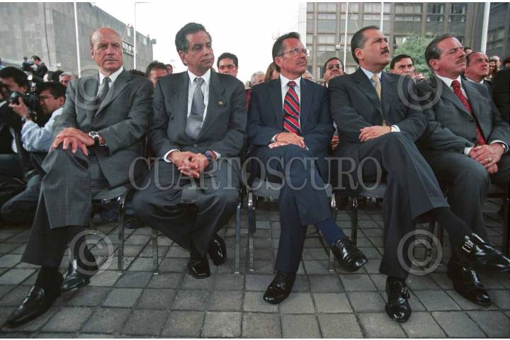Los senadores priistas Fidel Herrera y Enrique Jackson escuchan con atención el turno en tribuna de el diputado perredista Marti Batres, durante la sesión de la Comisión Permanente en el Senado, despúes de haber acudido a la Suprema Corte de Justicia para presentar la controversia constitucional. FOTO:Oswaldo Ramírez/CUARTOSCURO.COM