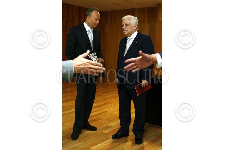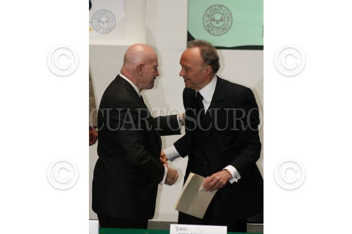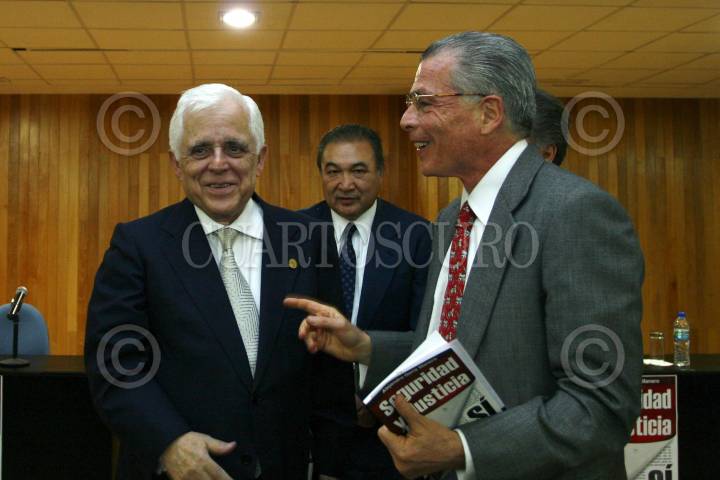 MÉXICO, D.F. 17OCTUBRE2007.- El ministro de la Suprema Corte de Justicia, Genaro Góngora Pimentel y Juan Velásquez, abogado de Luis Echeverría, durante la presentación del libroSeguridad y Justicia, si se puede, de Alejandro Hertz Manero. FOTO: PAOLA HIDALGO/CUARTOSCURO.COM