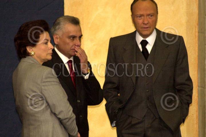 México, D.F. 16 FEBRERO 2004.- Josefina Ricaño de Nava, presidenta de la mesa directiva de México contra le delincuencia, Rafael Macedo de la Concha, procurador general de la República, y Alejandro Hertz Manero, secretario de seguridad pública, antes de dar inicio a la toma de protesta de los nuevos integrantes de la mesa directiva de México contra la delincuencia. FOTO: Sandra Perdomo/CUARTOSCURO.COM