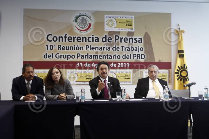MÉXICO, D.F., 31AGOSTO2011.- Los senadores del PRD, Arturo Herviz, María Rojo, Carlos Navarrete y Arturo Nuñez durante una conferencia de prensa acerca de la 10a Reunión Plenaria de Trabajo del Grupo Parlamentario del PRD que se realizo en el Senado de la República. FOTO: RODOLFO ANGULO/CUARTOSCURO.COM