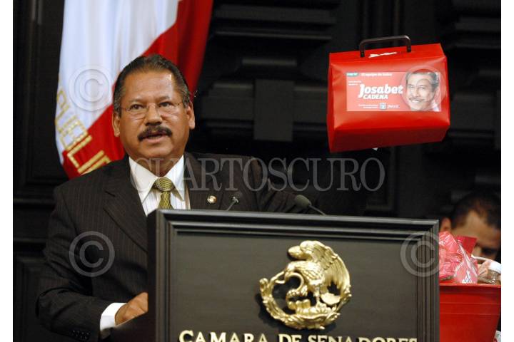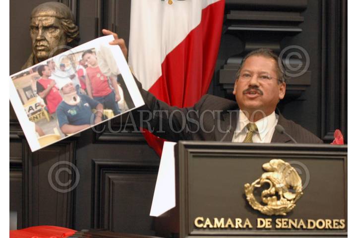 MÉXICO, D.F., 06SEPTIEMBRE2007.- El senador perredista Arturo Herviz Reyes, presentó en tribuna pruebas de una supuesta campaña sucia por parte del candidato priista de los Tuxtlax, Josabet Cadena, en el Senado de la República. FOTO: ISRAEL VERA/CUARTOSCURO.COM