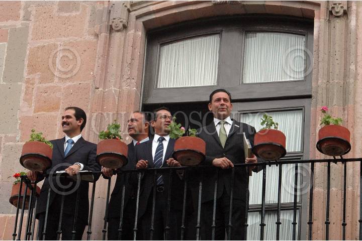 MÉXICO, D.F., 07MAYO2010.- El senador Federico Döring, la asambleista Alejandra Barrales, Demetrio Sodi, jefe delegacional y José Manuel Villalpando, coordinador de los festejos del Bicentenario durante un acto cívico en conmemoración por el natalicio de Miguel Hidalgo y Costilla que se realizo en la explanada delegacional de Miguel Hidalgo. FOTO: RODOLFO ANGULO/CUARTOSCURO.COM