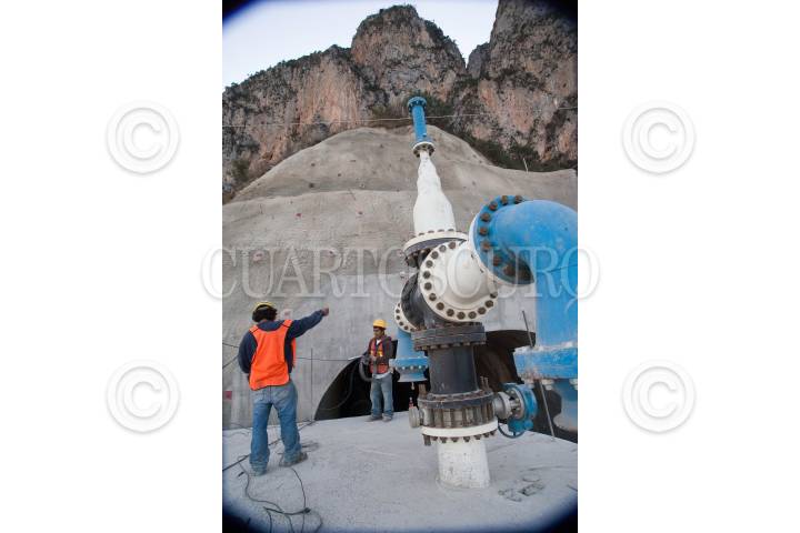 CADEREYTA DE MONTES, QUERÉTARO, 29ENERO2011.- Acueducto II es una obra de infraestructura hidráulica iniciada 2007 en el sexenio pasado, y está a unos días de inaugurarse. La mayor parte de su obra está oculta entre los cerros de la lejanía desde el municipio de Cadereyta. Su espectacularidad se encuentra lejos de los ojos de los consumidores del precioso líquido. Sin embargo aun existen las dudas por expertos en la materia de química sobre si el agua estaría contaminada por las filtraciones de la presa de Zimapán que lleva altos niveles de plomo y arsénico. La obra se construyó en medio de manifestaciones de inconformidad de los comuneros por la invasión de tierras, bloqueos de campesinos por el incumplimiento de los acuerdos y la lista de posicionamientos de los grupos ecologistas. FOTO: DEMIAN CHÁVEZ/CUARTOSCURO.COM