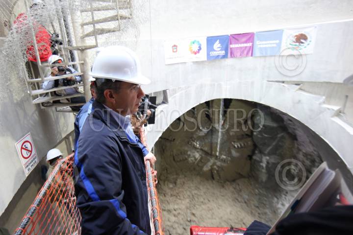 ECATEPEC, ESTADO DE MÉXICO, 07JULIO2011.- Felipe Calderón Hinojosa, Presidente de México, supervisó los trabajos de la obra hidráulica Túnel Emisor Oriente; obra que tiene como objetivo duplicar la capacidad del sistema de drenaje de la Cuenca del Valle de México, contar con una salida adicional para el desalojo de aguas residuales y pluviales, entre otros beneficios. FOTO: ARIEL GUTIERREZ/CUARTOSCURO.COM