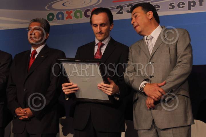 OAXACA, OAXACA, 23SEPTIEMBRE2011.- Inauguración de la Reunión Nacional de Infraestructura Hidráulica en la ciudad de Oaxaca, en la que participó el presidente nacional de la Cámara Mexicana de la Industria de la Construcción, José Eduardo Correa Abreu y Demián Sanchez Yeskett, coordinador de Asesores de la Presidencia de la República. Asimismo estuvo presente el secretario de las Infraestructuras del gobierno del Estado, Netzahualcoyotl Salvatierra así como representantes del resto de estados del país. FOTO: ARTURO PÉREZ ALFONSO/CUARTOSCURO.COM