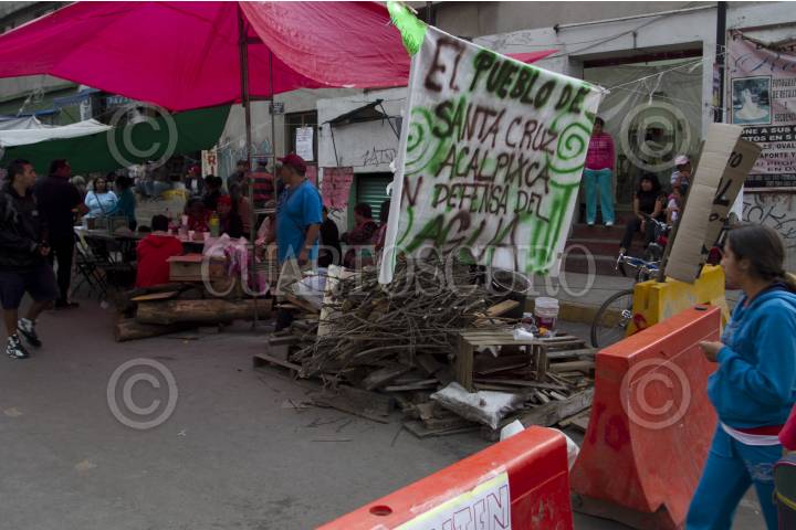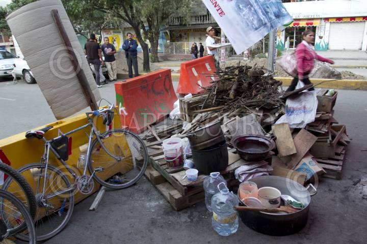 MÉXICO, D.F., 14FEBRERO2013.- Habitantes del pueblo de Santa Cruz Acalpixta, mantienen bloqueda la Avenida México del barrio de Tetitla, ya que se oponen la obra de hidráulica, pues e supone llevara agua potable a otra región, racionalizando del vital liquido a los habitantes por medio del tandeo. FOTO: GUILLERMO PEREA /CUARTOSCURO.COM