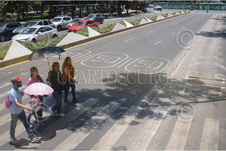 Con sombreros y sombrillas sale la gente a realizar sus actividades ante las altas temperaturas que se registran en el Valle de Toluca.