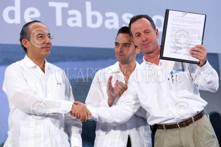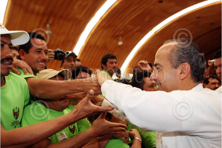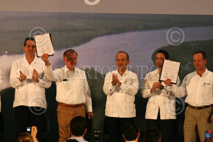 VILLAHERMOSA, TABASCO, 18ABRIL2008.- Felipe Calderon Hinojosa, Presidente de México, encabezo esta tarde la firma de convenio del Plan Hidrico Integral de Tabasco, dicha firma fue entre el gobernador tabasqueño Andrés Granier Melo y el director de CONAGUA José Luis Luegue Tamargo. En el acto estuvo presente el Secretario de la SEMARNAT Juan Rafael Elvira Quesada y el Secretario de Gobernación Juan Camilo Murillo. FOTO: MARCO POLO GUZMÁN HERNÁNDEZ/CUARTOSCURO.COM