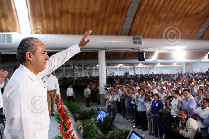 VILLAHERMOSA, TABASCO18ABRIL2008.- Felipe Calderón Hinojosa, Presidente de México, encabezó la presentación del Plan Hidrico Integral de Tabaasco, ceremonia que se realizó en el Parque Tabasco Nave II. FOTO: ALFREDO GUERRERO/CUARTOSCURO.COM