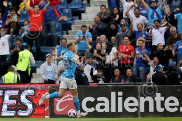 CIUDAD DE MÉXICO, 05OCTUBRE2024. El jugador de la Máquina Celeste, Carlos Rotondi celebra sus anotación durante el partido de fútbol Cruz Azul vs Necaxa correspondiente a la jornada 11 del Torneo Apertura 2024 de Liga BBVA MX, en el Estadio Ciudad de los Deportes. FOTO: EDGAR NEGRETE LIRA/CUARTOSCURO.COM