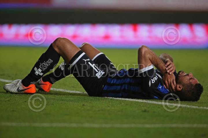 AGUASCALIENTES, AGUASCALIENTES, 27NOVIEMBRE2019.- Jair Pereira jugador de Querétaro se lamenta de una entrada fuerte, esto en partido correspondiente a los Cuartos de Final del Torneo Apertura 2019 de la Liga MX, en donde se enfrentan los Hidrorayos del Necaxa frente a los Gallos Blancos de Querétaro, en partido que se lleva a cabo en el Estadio Victoria, el marcador al final es de 2-0 a favor del equipo de casa. FOTO: FERNANDO CARRANZA GARCIA / CUARTOSCURO.COM