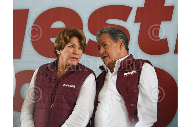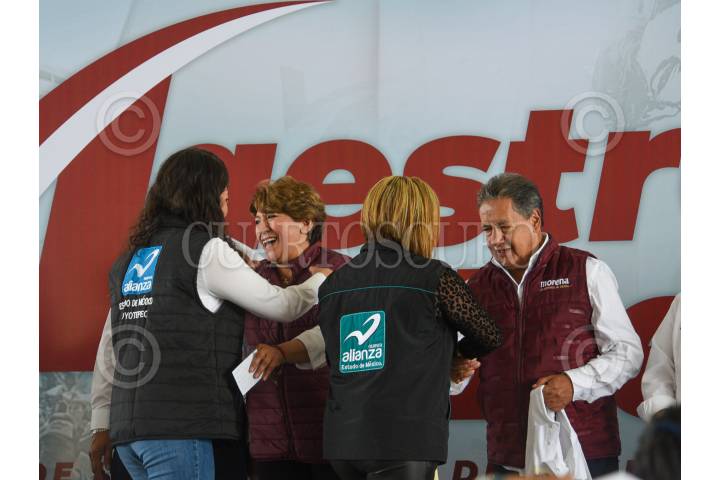 Delfina Gómez candidata a la gubernatura del Estado de México por MORENA, PVEM y PT sostuvo un encuentro con el magisterio mexiquense en San Pablo Autopán, en Toluca.