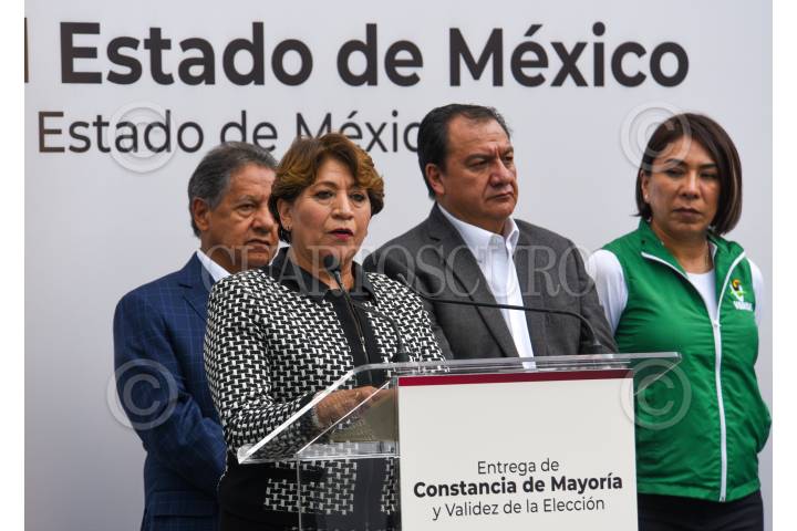 Delfina Gomez después de recibir su constancia de mayoría como Gobernadora del Estado de México ofreció un mensaje de agradecimiento en el IEEM.