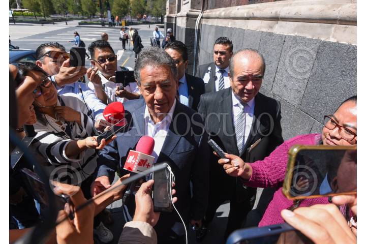Higinio Martínez senador con licencia durante la última reunión de Transición en Palacio de Gobierno entre los equipos de la gobernadora electa Delfina Gómez y el gobernador Alfredo del Mazo Maza.