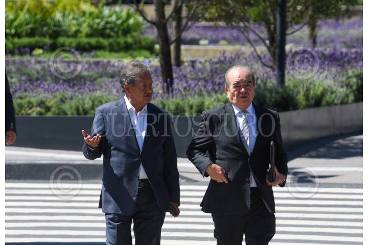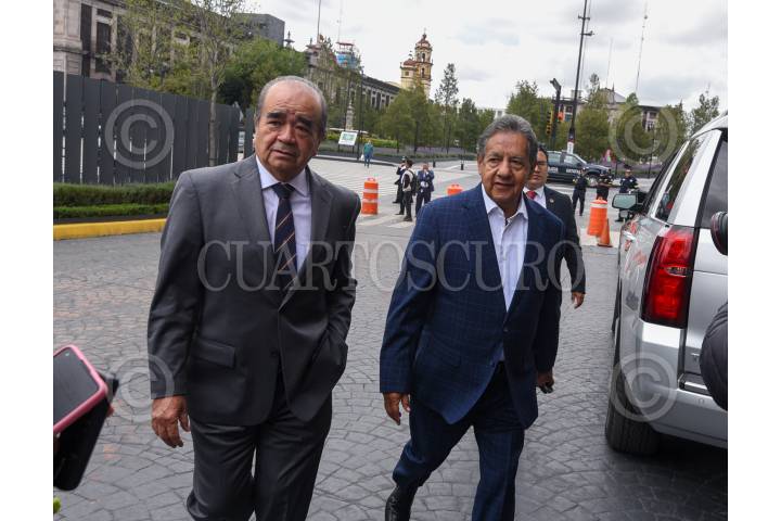 Higinio Martínez y Maurilio Hernández durante la reunión de Delfina Gómez Gobernadora Electa del Estado de México y Alfredo del Mazo Gobernador mexiquense.