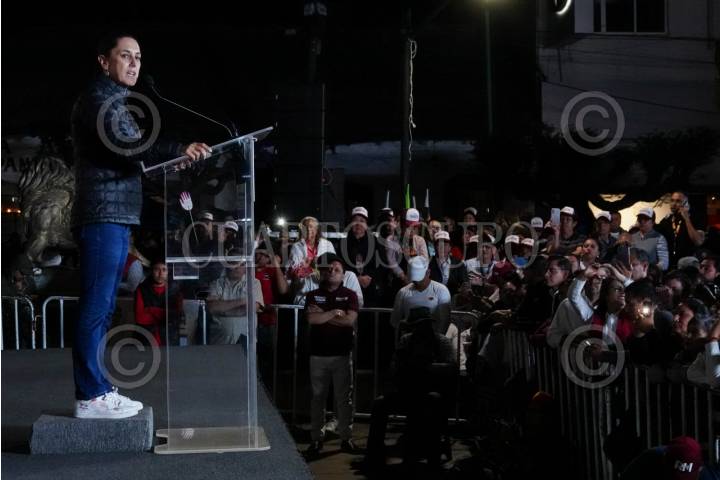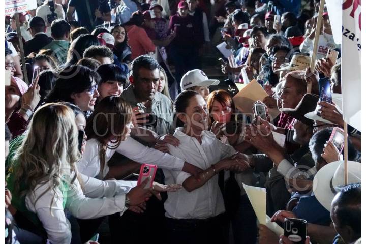 AMECAMECA, ESTADO DE MÉXICO, 10ABRIL2024.- Claudia Sheinbaum, candidata a la presidencia de la República por la coalición "Sigamos Haciendo Historia" (Morena-PT-PVEM), encabezó un mitin con simpatizantes en el zócalo del municipio mexiquense. FOTO: GALO CAÑAS/CUARTOSCURO.COM