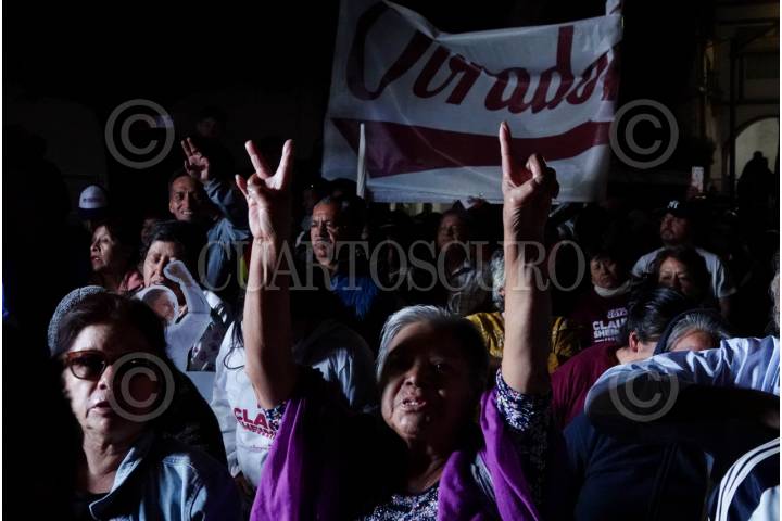 AMECAMECA, ESTADO DE MÉXICO, 10ABRIL2024.- Una mujer muestra su apoyo a Claudia Sheinbaum, candidata a la presidencia de la República por la coalición "Sigamos Haciendo Historia" (Morena-PT-PVEM), tras un mitin con simpatizantes en el zócalo del municipio mexiquense de Amecameca. FOTO: GALO CAÑAS/CUARTOSCURO.COM