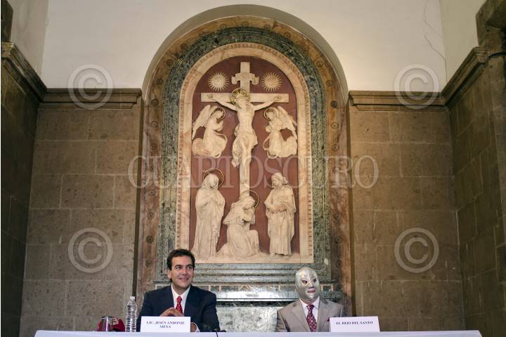 MÉXICO, D.F., 31MAYO2013.- "El Hijo del Santo", ofreció conferencia de prensa donde anunció su participación en la "Segunda Batalla del Milenio", evento de lucha libre a organizarse en el Zócalo de la Ciudad de México. FOTO: MISAEL VALTIERRA / CUARTOSCURO.COM
