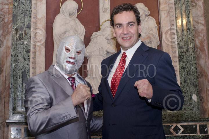 MÉXICO, D.F., 25JULIO2014.- El Hijo del Santo se toma algunas fotos con sus seguidores al finalizar la ceremonia en la cual el Ejecutivo Federal recibió al Primer Ministro Japones en el Palacio Nacional. FOTO: SAÚL LÓPEZ /CUARTOSCURO.COM