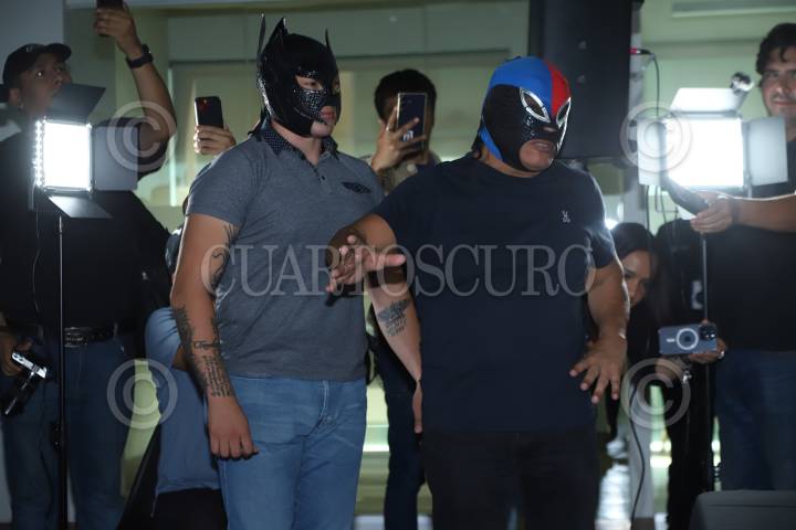 CIUDAD DE MÉXICO, 21MAYO2024.- El Hijo del Santo anunció su despedida como luchador, esto tras 42 años de trayectoria en los encordados. De la mano de Bobo Producciones realizará su gira de despedida denominada "La lucha libre como un arte en vivo", en la cual visitará 9 ciudades de la toda la República. En la imagen lo acompaña el productor Ari Borovoy. FOTO: AARON VALERO HERNÁNDEZ/TODO X EL TODO/SOLO USO EDITORIAL