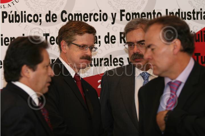 MÉXICO, D.F., 26SEPTIEMBRE2008.- El presidente de México; Felipe Calderon Hinojosa, durante la "Cuarta Sesión del Consejo General de Investigación Cientifica y Desarrollo Tecnologico, que se llevó acabo en la residencia oficial de los Pinos. En la gráfica, acompañado por el Secretario de Hacienda y Credito Público; Agustin Carstens, Juan Carlos Romero Hicks; director general del CONACYT y Gerardo Ruiz Mateos; Secretario de Economía. FOTO: ALFREDO GUERRERO/CUARTOSCURO.COM