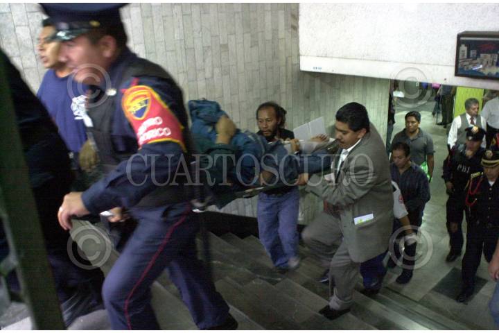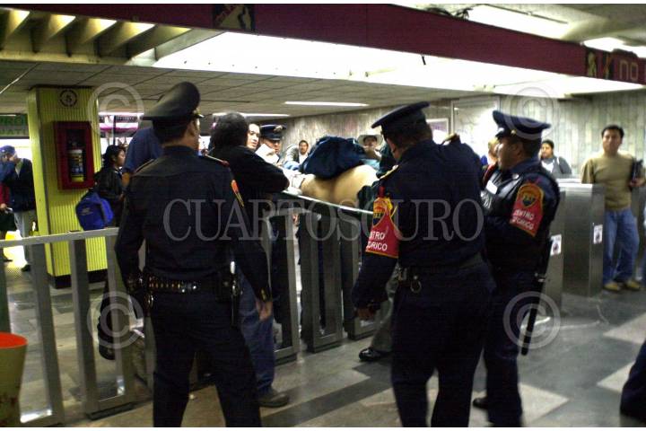 Un sujeto fue aprehendido luego de intentar asaltar a Hilario Soriano, a quien hirió con dos impactos de bala. El incidente ocurrió en la estación del Metro Isabel la Católica al interior de un tren que corria por la linea 1, de Pantitlan a Observatorio. FOTO: Juan Pablo Zamora/CUARTOSCURO.COM