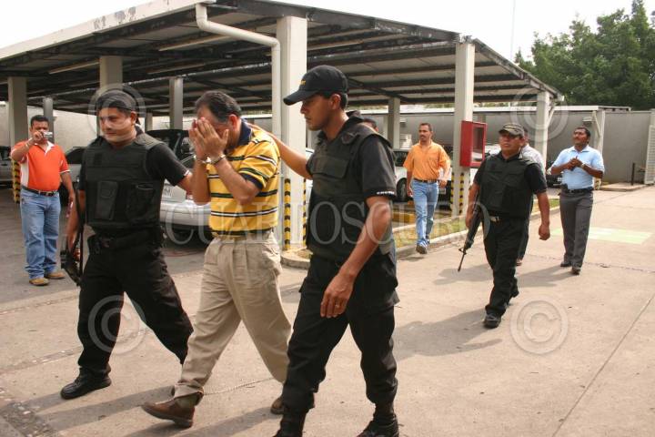 Villahermosa, Tabasco, 09MARZO2005.- Fuertemente custodiado por elementos políciacos del Creset y polícia judicial del estado, fue trasladado el empresario Germàn Hilario Corsa Castro al lugar de los hechos, donde presuntamente perpetuo el crimen de Agustín Ochan, quien perdió la vida en una balacera al salir del centro de su trabajo de la empresa Leche Alpura FOTO: Marco Polo Guzmán/CUARTOSCURO.COM Comentarios: 0