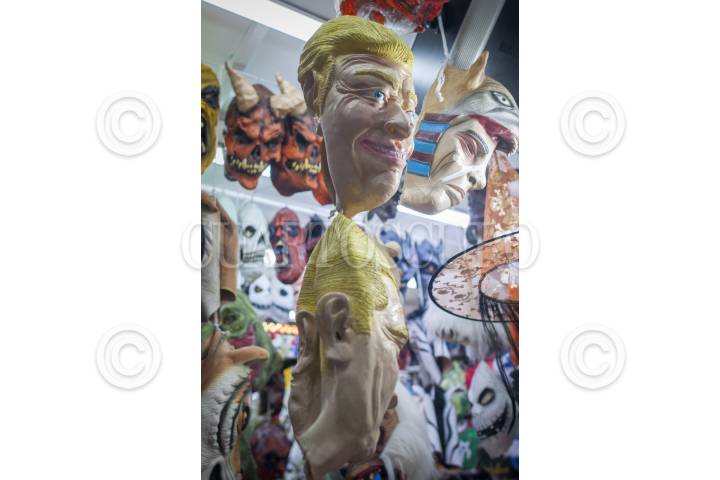 CIUDAD DE MÉXICO, 23SEPTIEMBRE2016.- Las mascaras de Donald Trump y Hillary Clinton, candidatos a la presidencia de Estados Unidos, son los productos más cotizados en las tiendas de disfraces del Mercado de Sonora, para el próximo día de muertos. FOTO: DIEGO SIMÓN SÁNCHEZ /CUARTOSCURO.COM