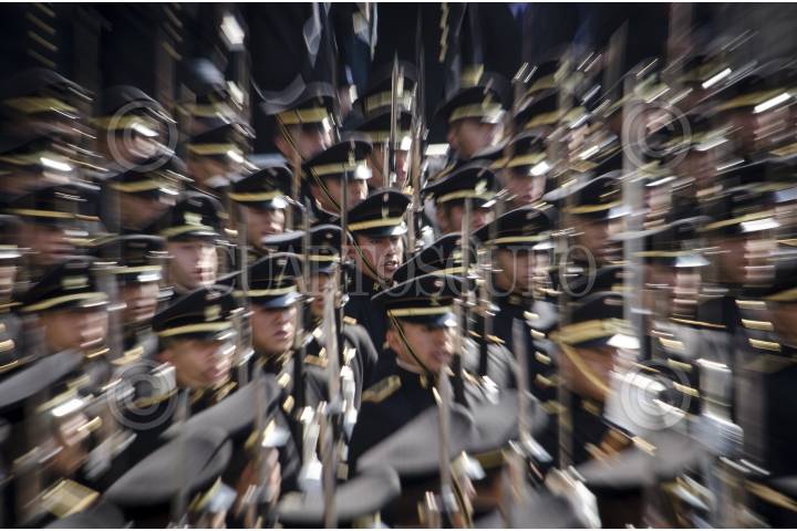 MÉXICO, D.F., 09FEBRERO2013.- Cadetes del H. Colegio Militar, entonan el Himno Nacional durante el C Aniversario de la Marcha de la Lealtad realizado en el Castillo de Chapultepec. FOTO: MISAEL VALTIERRA / CUARTOSCURO.COM