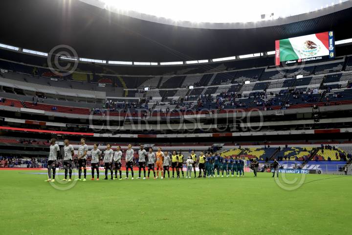 Se entona el himno nacional previo al partido de fútbol Cruz Azul vs León correspondiente a la jornada 16 del Torneo Apertura 2022 de Liga BBVA MX, en el estadio Azteca.
